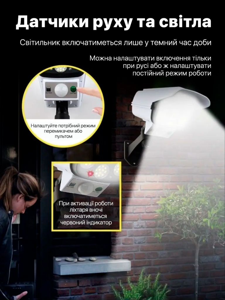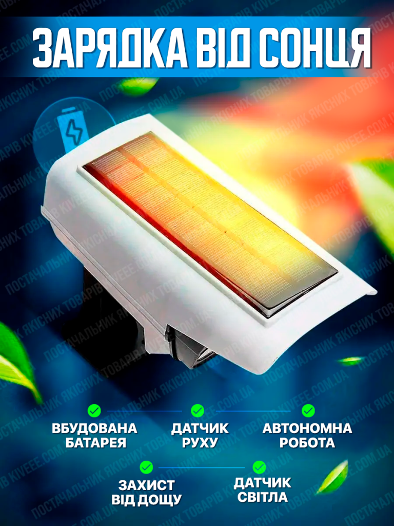 Товар прийшов цілий добре упакований, працює вже тиждень все добре, дощем доки не перевіряли. За свою ціну пристойний товар, датчик руху метра з 2 включається🔥🔥🔥