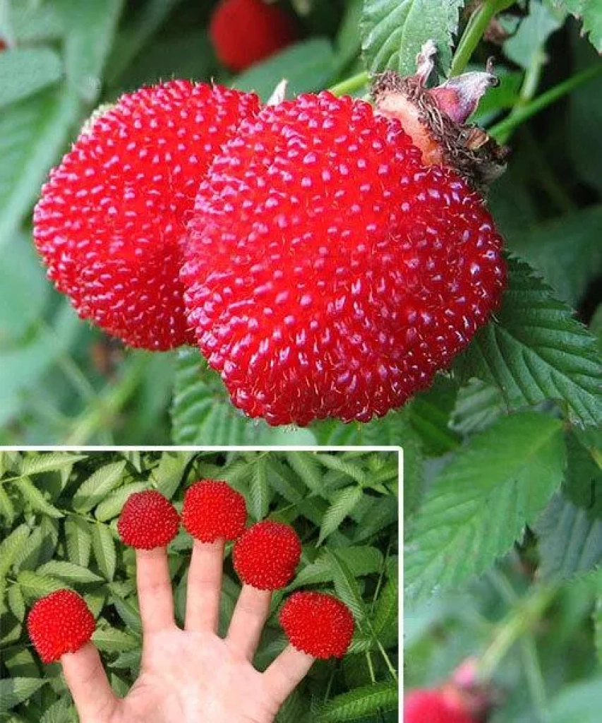 Основна особливість тібетської малини Мяо Мяо: полягає у її надзвичайно великих і смачних ягодах, які за формою і розміром нагадують суницю.